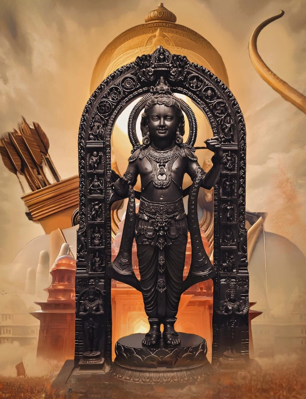 51 इंच की मूर्ति में भगवान राम को एक ही पत्थर से बने कमल पर खड़े पांच साल के बच्चे के रूप में दर्शाया गया है।